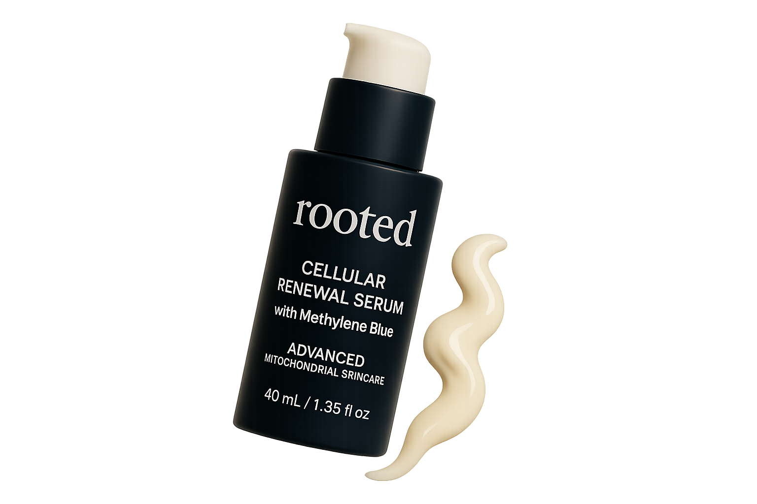 Rooted Cellular Renewal Serum isn’t built on trends — it’s built on biology. At the core of this formula is Methylene Blue, a clinical-grade antioxidant that supports your skin’s mitochondria — the energy source every cell needs to repair, renew, and glow.